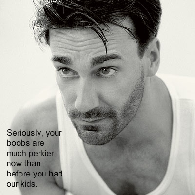 I came across this blog called Pregnant Chicken and nearly peed my pants laughing at the latest post on porn for pregnant ladies. I started brainstorming on what would get me excited since it feels like I’m stuck in mommy mode 24-7. This is what I came up with. Holla back if you agree and feel free to add. Heck, even Mommy Om mommies need a lil sumthin sumthin~