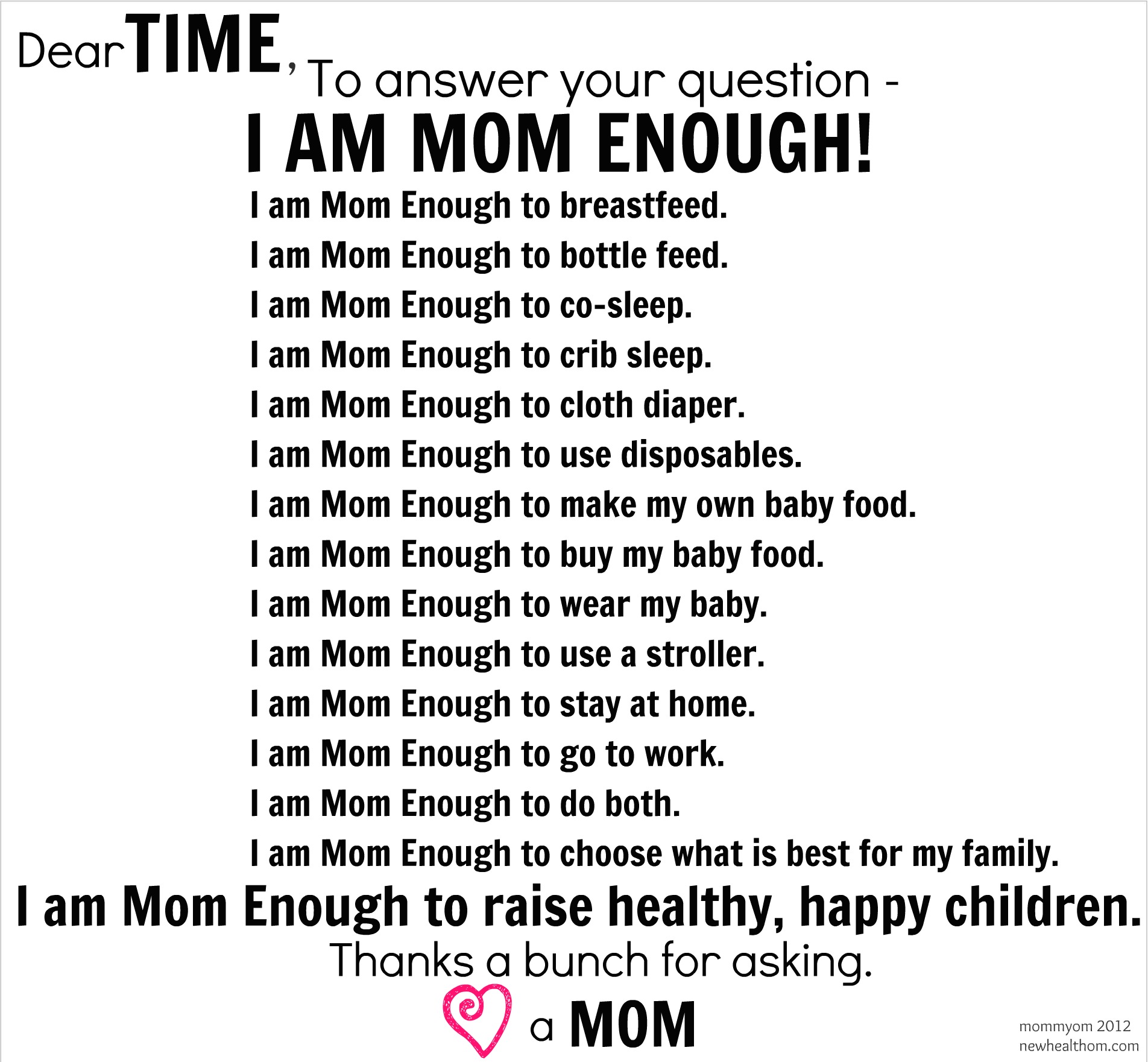 […] I was pretty dissapointed with TIME in the way they approached this subject of attachement parenting. I understand why they addressed it, I just feel like they could have done so much better in their approach. I’ve also been following another blog in recent months and she did a whole article about this TIME Magazine cover as well. However, she also wrote this and I thought it was perfect. It’s fit for every mother showing that it doesn’t matter which parenting approach you take, YOU ARE MOM ENOUGH! Check it out here! […]