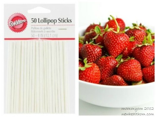 I went to the craft store and picked up some ribbon and some lollipop sticks. I stopped at the grocery store and bought organic strawberries, an organic pineapple, and some organic brownie mix.